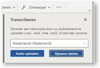 AVT-Blog – De opname van een interview laten uitschrijven via Microsoft-Word – audio-uploaden Een audiobestand uploaden Categorieën Nieuws Spraakherkenning Techniek Tips & Tricks Recente berichten Corti Assistant – Realtime AI-assistent voor de zorg GoSpeech: AI transcriptie van interviews en vergaderingen met sprekersherkenning Hoe leer ik Dragon mijn woorden goed te herkennen Dragon Copilot: De AI-revolutie in medische spraakherkenning uitgelegd Microsoft introduceert Dragon Copilot – Een nieuwe manier van medische verslaglegging met spraakherkenning en AI