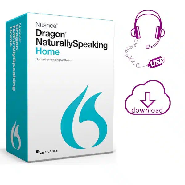 Dragon Naturallyspeaking 13 Home spraakherkenning met USB-headset en installatie DVD