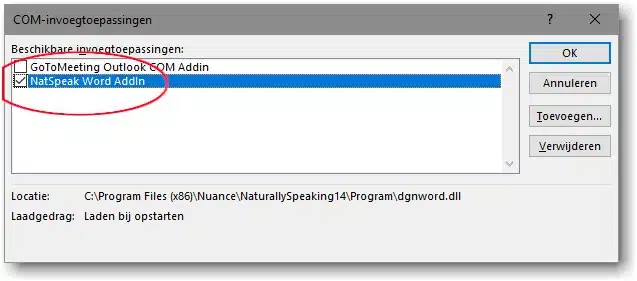 Dragon invoegtoepassing voor office-2016 aanzetten