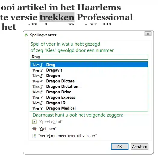 Het-Dragon-spellingsvenster-leer-Dragon-wat-het-juiste-woord-is Het-Dragon-spellingsvenster-leer-Dragon-wat-het-juiste-woord-is Categorieën Nieuws Spraakherkenning Techniek Tips & Tricks Recente berichten Corti Assistant – Realtime AI-assistent voor de zorg GoSpeech: AI transcriptie van interviews en vergaderingen met sprekersherkenning Hoe leer ik Dragon mijn woorden goed te herkennen Dragon Copilot: De AI-revolutie in medische spraakherkenning uitgelegd Microsoft introduceert Dragon Copilot – Een nieuwe manier van medische verslaglegging met spraakherkenning en AI