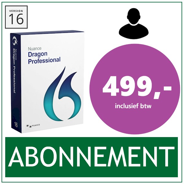 Nuance Dragon Professional 16 Abonnement - De Dragon 16 spraakherkenningssoftware als abonnement. Inclusief upgrades naar nieuwe versies en Cloud opslag van het spraakprofiel - Diverse talen mogelijk