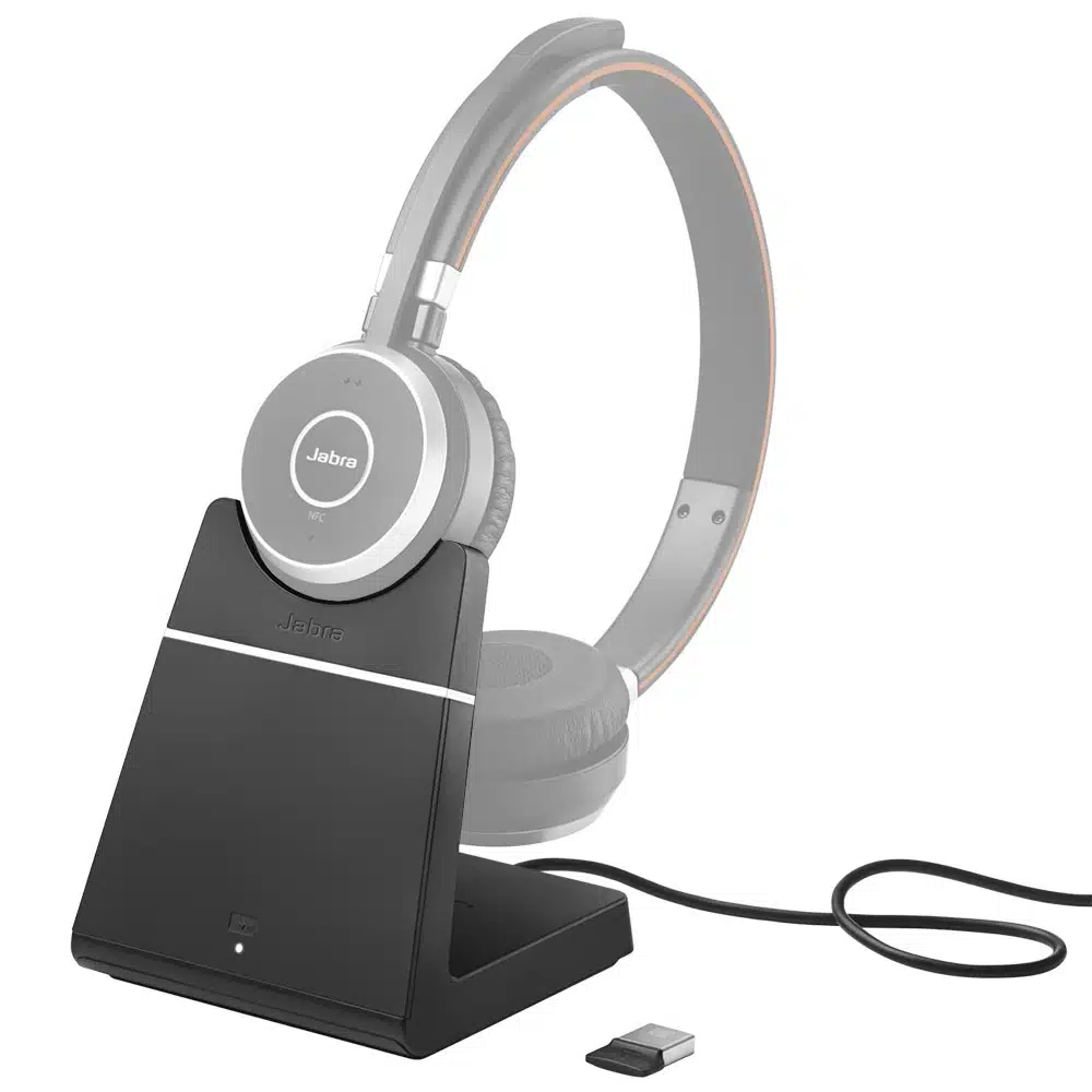 Nooit meer het snoertje koppelen aan uw Jabra Evolve 65 om deze op te laden. U plaatst eenvoudigweg uw Evolve in dit oplaadstation.