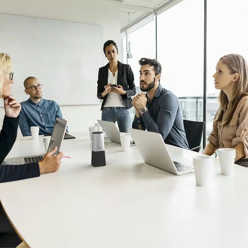 De SmartMeeting-oplossing is voorzien van een luidspreker van hoge kwaliteit die ervoor zorgt dat u ieder woord tijdens de vergadering kunt horen en begrijpen.