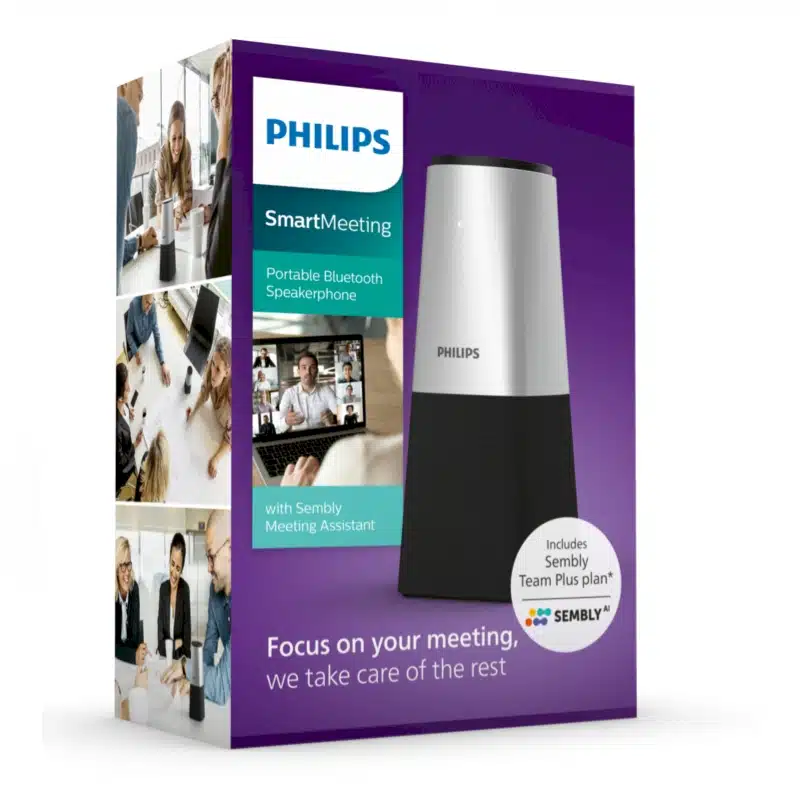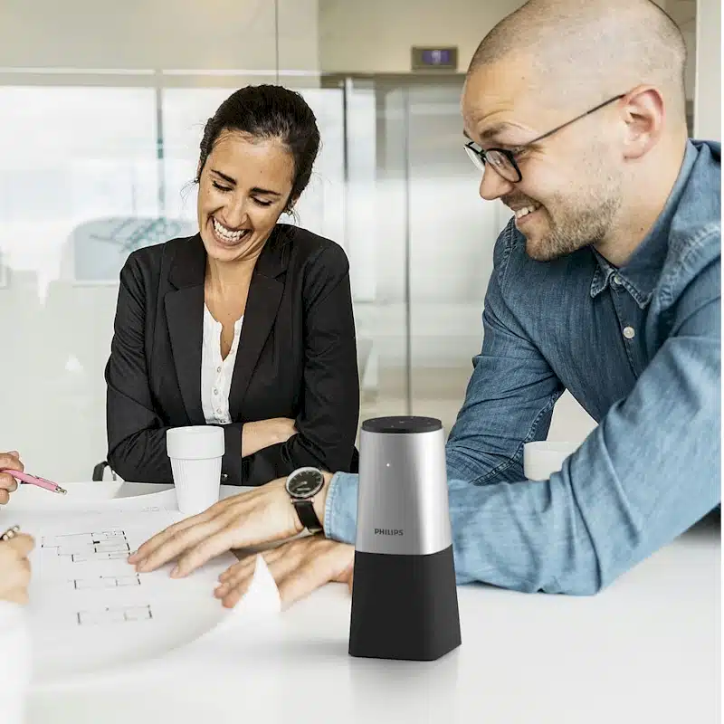 U kunt nu iedereen* aan tafel nauwkeurig opnemen met deze Philips 360-graden 4-array microfoon van hoge kwaliteit voor duidelijke opnames van uw vergadering of interview.