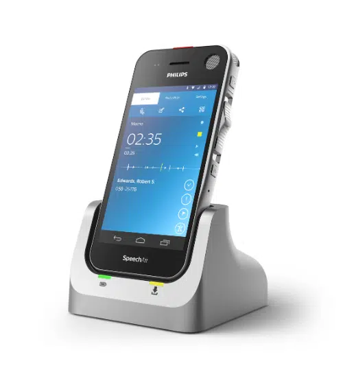 Philips Speech Air Dicteer recorder PSP2200 met handig bureaulader/dockingstation